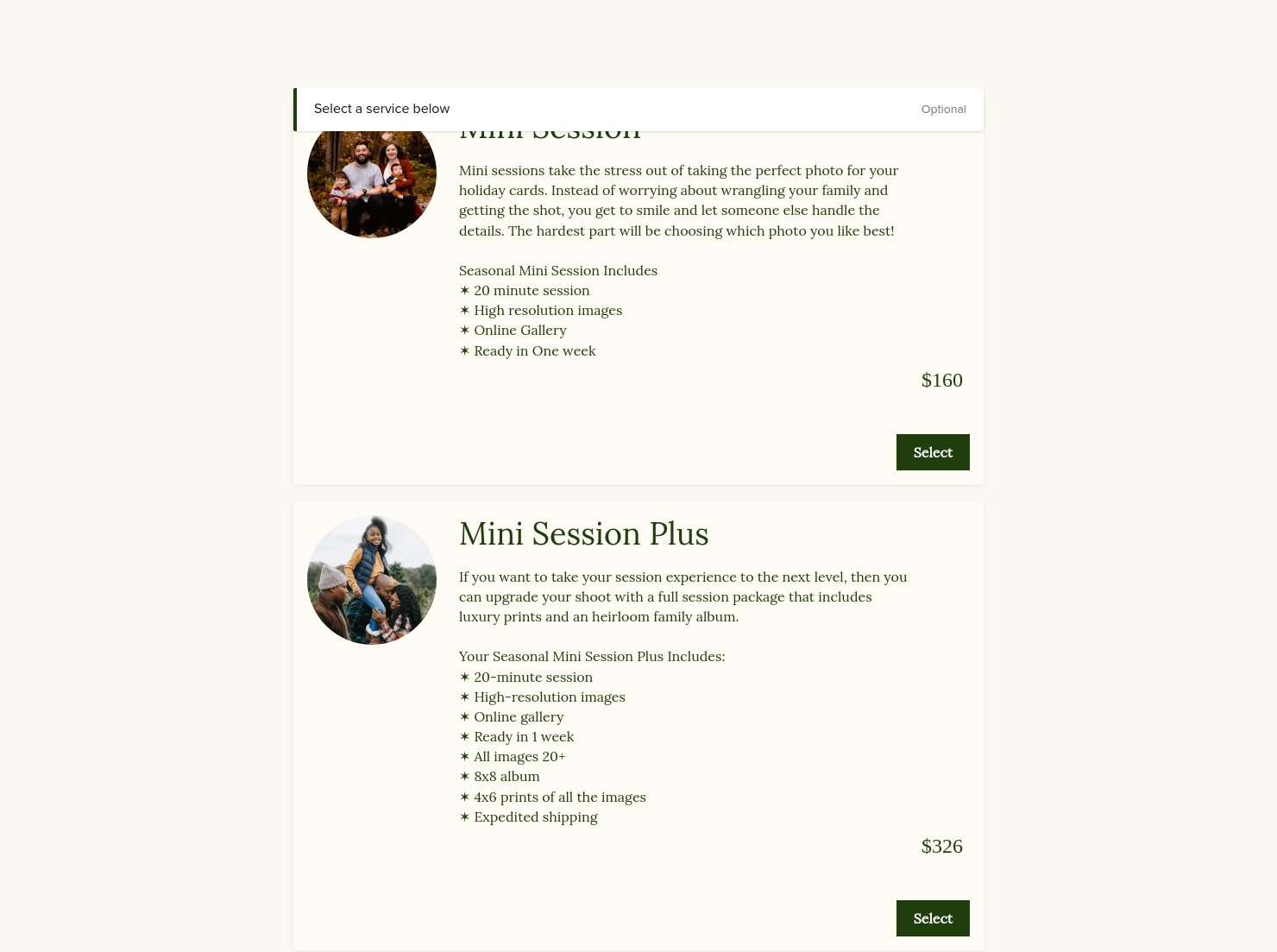 Present your services with a proposal that lets clients sign up for a mini-session, schedule a photoshoot, book you, sign your contract, and make a first payment all in one go. This proposal includes service details and invoicing for a straightforward workflow that sets clear project expectations with clients.