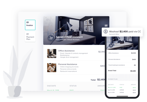 Your clients expect you to be professional when handling their client and customer interactions. So to maintain trust with them, you need to make sure you’re always putting your best foot forward. HoneyBook’s VA invoice templates make it possible for you to create and send professional invoices in minutes. And using HoneyBook’s secure payment portal, you can process payments like a pro, too.